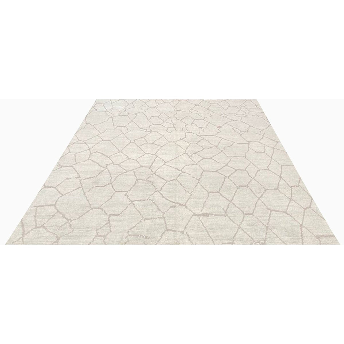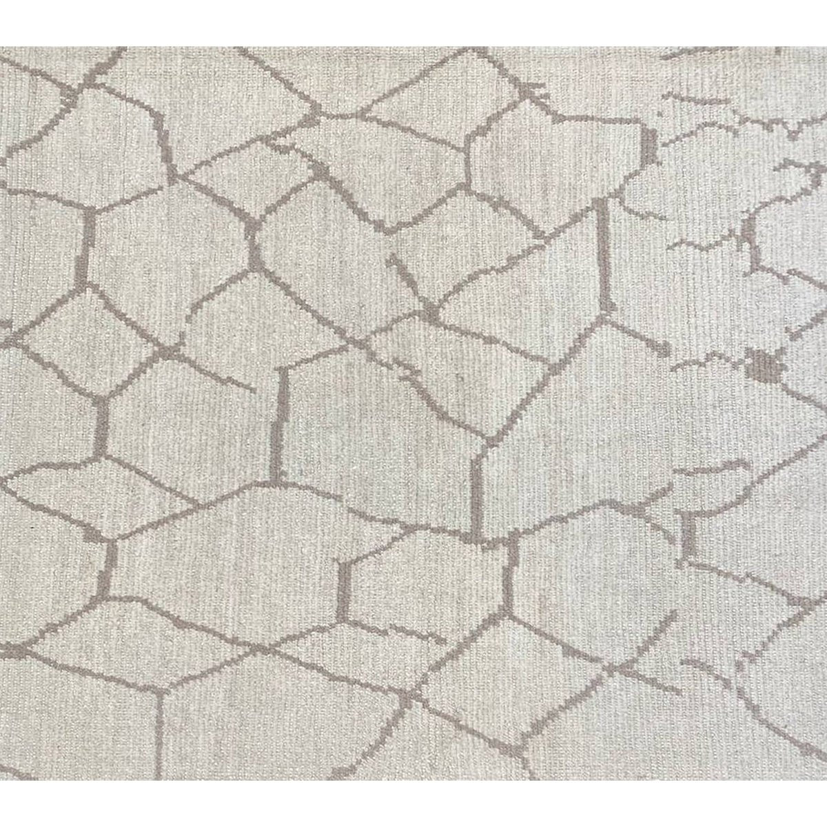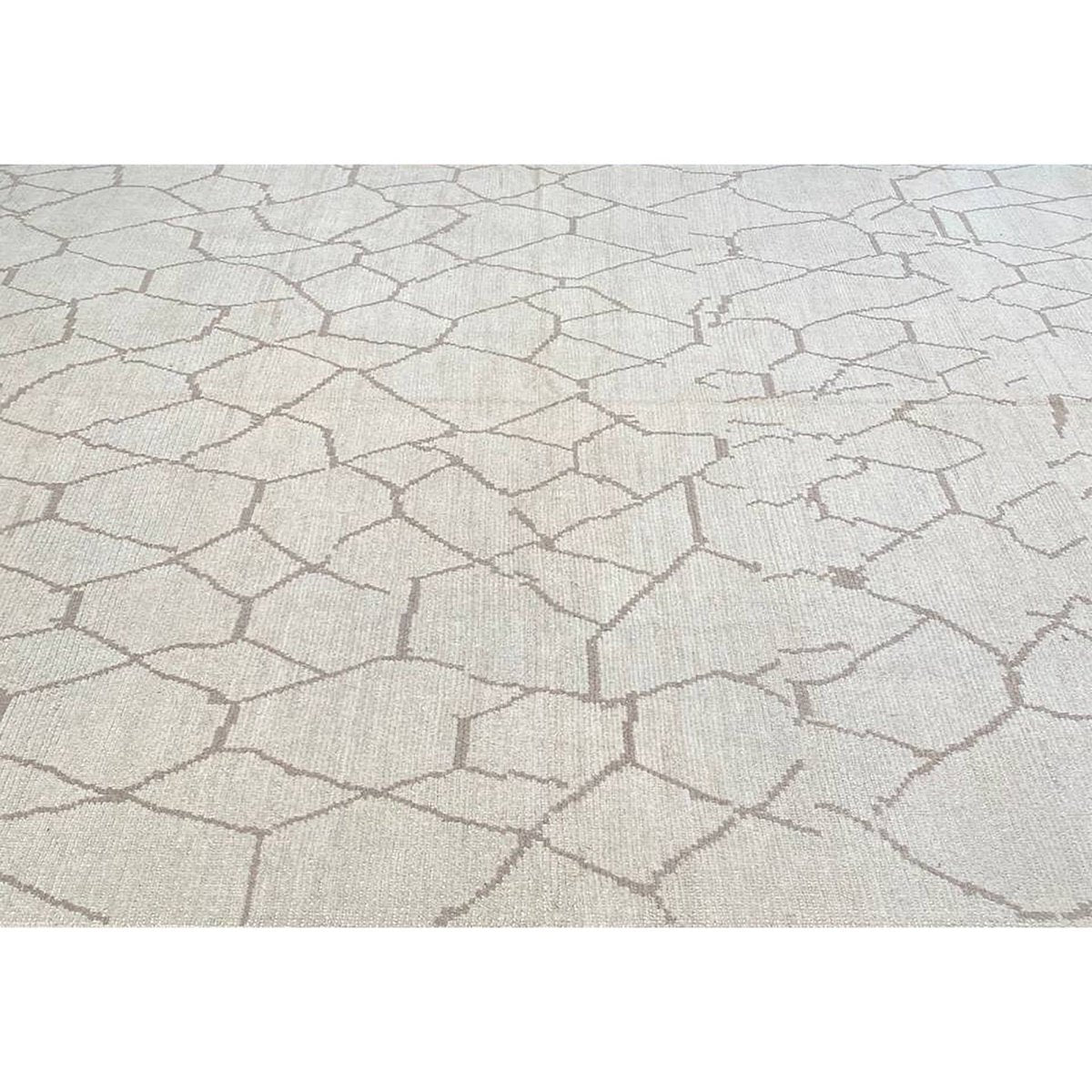 Create a warm and inviting atmosphere with this stunning 9x12 Turkish Moroccan area rug, hand-knotted in Turkey. This rug has a soft ivory base and an intricate tan geometric pattern, which adds natural charm and sophistication to any room. Handwoven with high-quality materials, it offers durability and comfort underfoot.