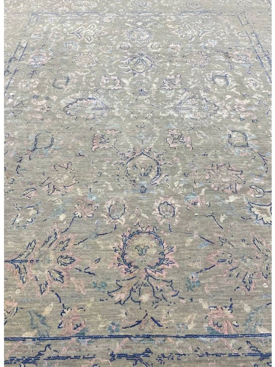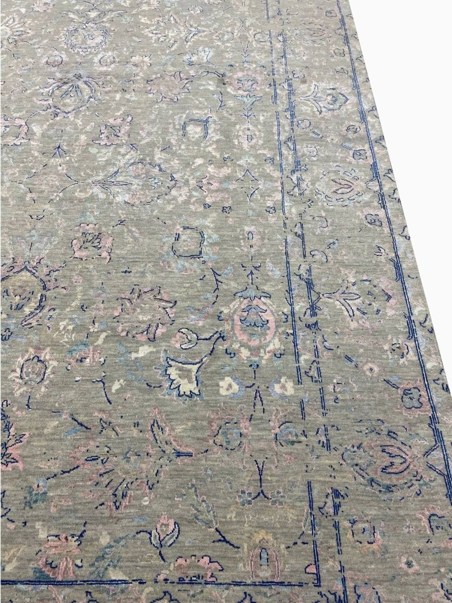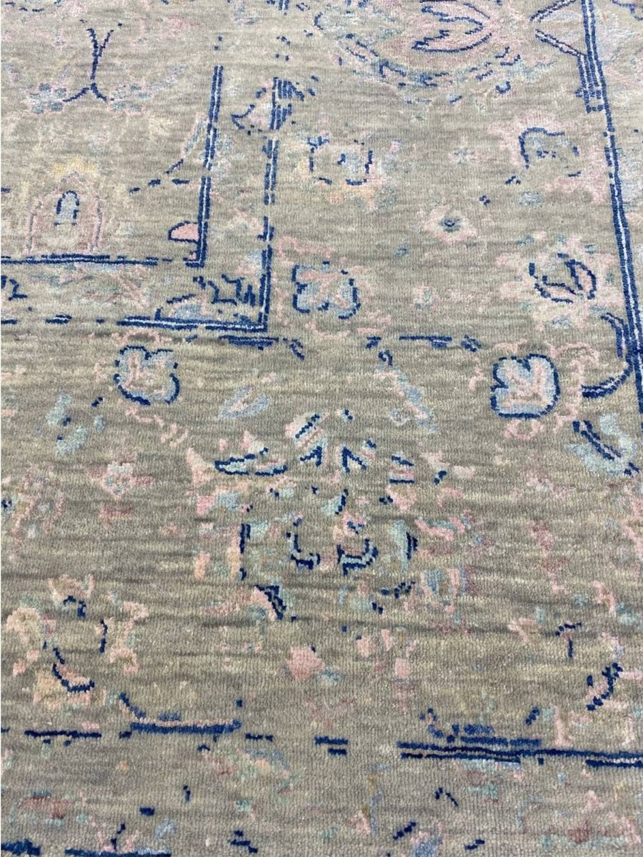 The 9x12 Transitional Area Rug is a unique treasure that embodies the rich history of Indian weaving and will transform your living area. Made from high-quality wool, this gorgeous rug features a geometric design that blends in perfectly with any type of interior design. It provides a friendly atmosphere and is perfect for spaces such as living rooms, bedrooms, or as a chic addition in your workplace. This amazing carpeting is a stunning work of art that elevates your living area and goes beyond simple decoration. It is a multipurpose addition to your house because of the striking blend of beige, green, blue, and pink that offer depth and character. Take advantage of free US delivery.