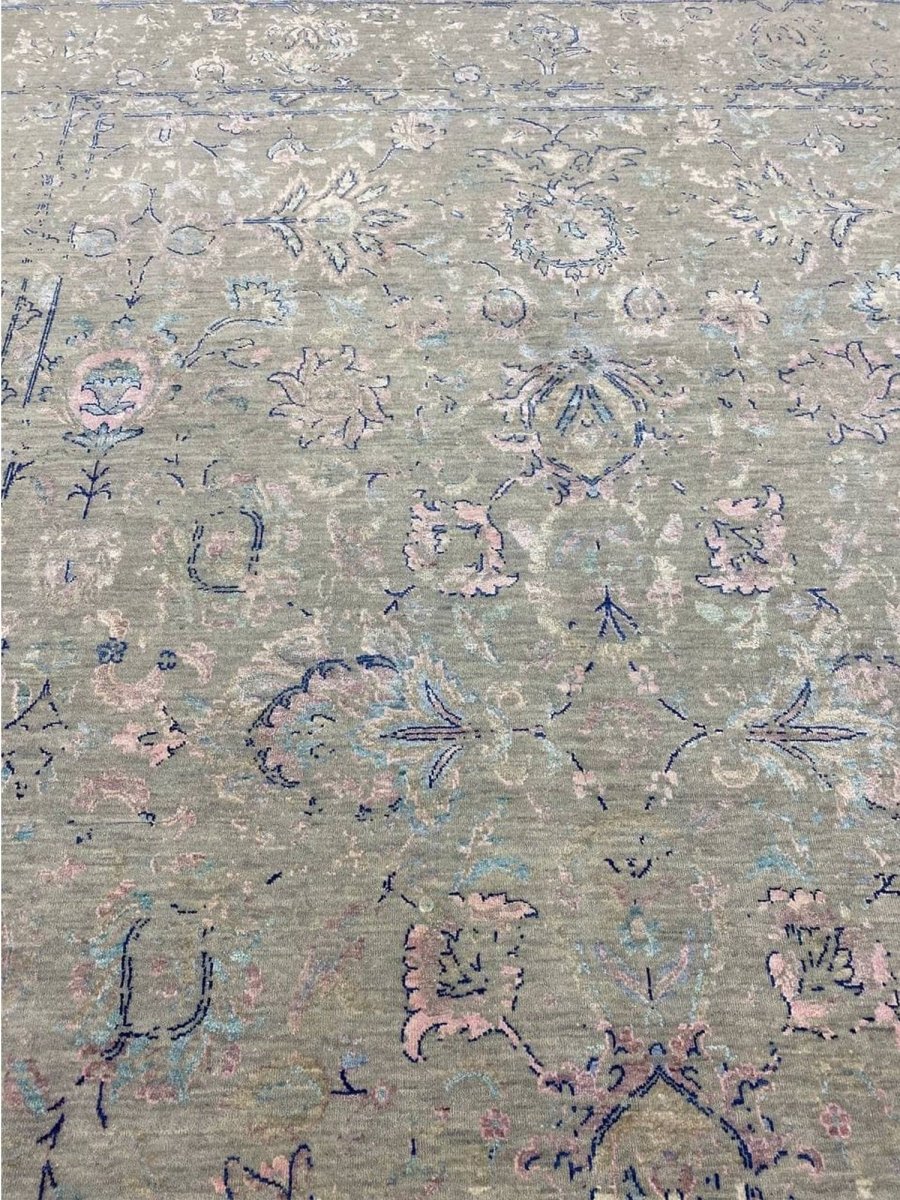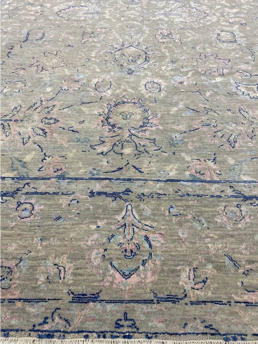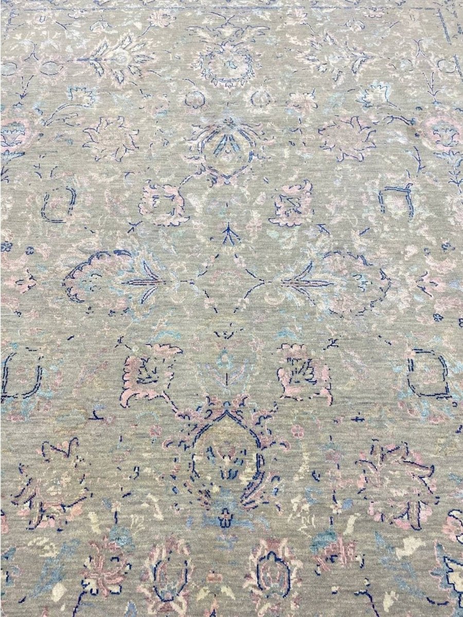 The 9x12 Transitional Area Rug is a unique treasure that embodies the rich history of Indian weaving and will transform your living area. Made from high-quality wool, this gorgeous rug features a geometric design that blends in perfectly with any type of interior design. It provides a friendly atmosphere and is perfect for spaces such as living rooms, bedrooms, or as a chic addition in your workplace. This amazing carpeting is a stunning work of art that elevates your living area and goes beyond simple decoration. It is a multipurpose addition to your house because of the striking blend of beige, green, blue, and pink that offer depth and character. Take advantage of free US delivery.